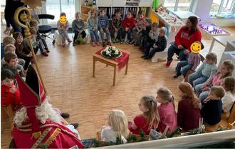 Außerdem besuchte uns der Nikolaus im Kindergarten. Die Kinder warteten schon ganz gespannt auf ihn und er durfte mit uns ein bißchen Zeit verbringen. Wir sangen Lieder und die Dorfspatzen sagten dem Nikolaus ein tolles Gedicht auf. Bevor er weiterzog, hatte er für jedes Kindergartenkind noch ein kleines Säckchen dabei. Vielen Dank lieber Nikolaus, dass du bei uns warst.
