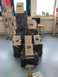 Beim Betreten der Schulbibliothek ist dieses Mal etwas ganz anders: Leise Musik in Anklang an die jüdische Klezmer-Musik, ein mit Steinen ausgelegter Weg, der die verschiedenen Vernichtungslager im nationalsozialistischen Deutschland symbolisiert und an deren Ende meist der Tod vieler überwiegend jüdischer Mitbürgerinnen und Mitbürger stand, und darüber hinaus Schauecken und Schautafeln zu wichtigen Themen in Deutschland während der nationalsozialistischen Schreckensherrschaft zwischen 1933 und 1945, die versuchen das Ganze begreifbar zu machen. Dabei wird konkret über die Reichspogromnacht, die Bücherverbrennungen und das nationalsozialistische Euthanasieprogramm informiert, alles geplante und gezielte Aktionen des damaligen Regimes.