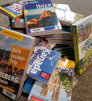 Die älteren, aussortierten Reiseführer können Sie für nur 50 Cent je Buch erwerben. Schauen Sie einfach in unser kleines Flohmarkt-Eck!