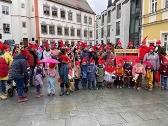 „Wald-Zwerge! Wald-Zwerge“, hörte man die Waldwichtel des Waldkindergartens St. Franziskus am Samstag fröhlich durch die Straßen trällern.