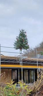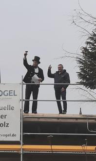 Bevor im neuen Jahr der Innenausbau erfolgt, wurde nun der Richtspruch durch einen Vertreter der Fa. HolzVogel gesprochen und eine kleine Andacht gefeiert. Im Nachgang war Gelegenheit, das Bauwerk auch von innen in Augenschein zu nehmen. Der Grundtenor war überaus positiv. Die Beteiligten freuten sich über das nahezu pünktliche Erreichen dieser Wegmarke und wurden belohnt mit einem Sektempfang und einem leckeren Suppenbuffet in der warmen Kirche.