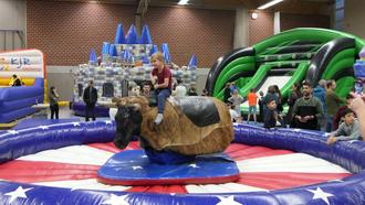 Mit insgesamt elf unterschiedlichen und spannenden Attraktionen bot das Festival ein unvergessliches Erlebnis für Jung und Alt. Fünf Stunden konnten sich die Kids bis einschließlich 13 Jahren am Nachmittag so richtig austoben. Der absolute Favorit unter den Spielgeräten war zum Beispiel für den fünfjährigen Max aus Breitbrunn das Bullriding, einer professionelle Rodeoanlage für Kinder und Erwachsene. In den verschiedenen Schwierigkeitsstufen gab Max alles, um fest im Sattel zu bleiben. Seine Eltern fieberten eifrig mit, auch wenn der anschließende, weiche Sturz auf das Luftkissen unvermeidlich war.