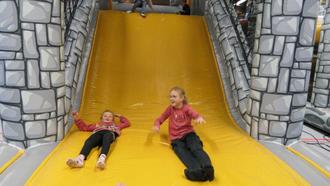 Die achtjährige Kaya Große aus Knetzgau (rechts) feierte ihren Kindergeburtstag bei dem Hüpfburgenfestival und hatte besonders auf der Ritterrutsche jede Menge Spaß zusammen mit ihren Freundinnen.