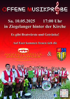 Zu Beginn der Musiksaison möchte die Heimatkapelle Ziegelanger am Samstag, den 10.05., eine öffentliche Musikprobe veranstalten.