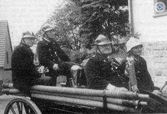 Gerätehauseinweihung: Ludwig Kirchner, August Ernst, Kilian Füßer, Max Schorr (Fahrer)