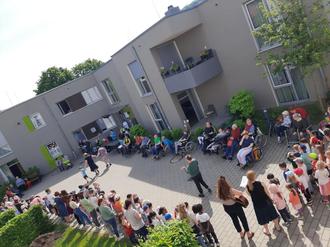 Bei strahlendem Sonnenschein machte das Singen allen noch mehr Freude. So erklang aus dem Innenhof der Rummelsberger ein gemischtes Repertoire aus altbekannten Volksliedern.