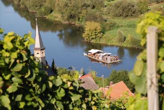 Die weinselige Floßfahrt führt entlang auf dem naturbelassenen Altmain zwischen Volkach und Gerlachshausen durch ein einmaliges Naturdenkmal.