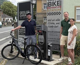 Diese stellt die Geisler Garage Zeil am Main jetzt in Form einer professionellen Fahrradreparaturstation auf dem Ausstellungsplatz in der Bamberger Straße 34 zur Verfügung. Hier können sich Radlerinnen und Radler für den richtigen Reifendruck oder bei Pannen selbst helfen.