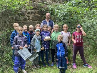 Die Teilnehmer des Ferienprogramms auf der Ruine Schmachtenberg.