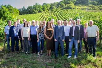 Ein weiter Ausblick über die sonnigen Rebhänge bis tief ins Abt-Degen-Weintal: In Steinbach eröffnet am 1. September ein neuer „terroir f“-Punkt, der Besucherinnen und Besuchern die Besonderheiten der örtlichen Weinlandschaft und die Geschichte des Weinbaus näherbringt. Den besonderen Aussichtspunkt durften die Teilnehmenden der jährlichen Mitgliederversammlung von Haßberge Tourismus e.V. bereits am 25. Juli 2025 vorab kennenlernen.