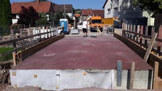 Die Erneuerung der maroden Brücke über den Krumbach begann wie geplant im Frühjahr. Zunächst liefen die Arbeiten nach Plan, so dass die Fertigstellung der neuen Brücke im Juli realistisch schien. Doch dann traten Schwierigkeiten auf, die den Zeitplan nun durcheinanderwirbeln. Wir bitten alle Bürger um Verständnis für die nötige Anpassung.