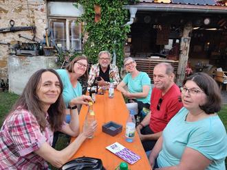Ganz im Zeichen der Kunst stand die September-Radtour der Sinnschule von Monika Schraut. Das i-Tüpfelchen war ein Kunst-Atelier in Westheim. Der multi-talentierte Hannes Betz öffnete die Pforten seiner Galerie, gab Einblicke in seine Werkstatt und lud alle Teilnehmenden am Ende zu einem angeregten Gespräch und einem Umtrunk in seinen Garten ein.