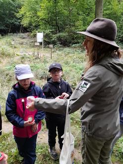 Viel Spaß hatten die Kinder auch bei der Walderlebnisaktion mit der Rangerin im Naturpark-Haßberge Katja Winter. Die Kinder erfuhren einiges über die Arbeit einer Rangerin und den Naturpark-Haßberge. Dann durften sie auch Tiere suchen und beobachten und lernten noch einiges über die Tier- und Pflanzenwelt rund ums grüne Klassenzimmer kennen.