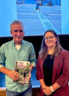 Der Zeiler Hubert Karl beeindruckte seine Zuhörer, unter ihnen unsere Leiterin der Stadtbibliothek, Lena Vorndran.