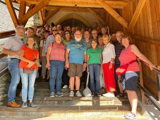 Mit der Zahnradbahn, die ab Brannenburg mit einer abenteuerlichen Streckenführung himmelwärts führte, wurden wir mit einer phantastischen Sicht belohnt! Auf dem Wendelstein befindet sich auch die Wendelinskapelle. Hier feierten wir mit Pfarrer Michael Erhalt eine beeindruckende Andacht.