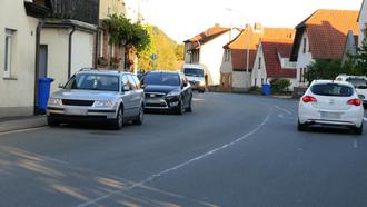Ziegelanger Ortsdurchfahrt: So wie es auf diesem Foto vorbildlich gezeigt wird, sollen auch alle anderen parkenden Autos in der Ziegelangerer Ortsdurchfahrt in Zukunft immer auf der Straße stehen und nicht den Gehweg mitbenutzen. Dies soll zur Verschmälerung der sehr breiten Straße dienen und so eine Entschleunigung des Verkehrs herbeiführen.