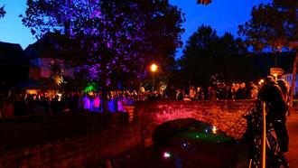 "Was die Würzburger machen, können wir in Zeil schon lange", dachte sich der gemeinnützige Verein "Die Zünder" und veranstaltete am Wochenende zur Kirchweih in der Fachwerkstadt erstmalig den "Bachschoppen". Zugegeben, die kleine Zeiler Steinbrücke über die Altach, hat nicht annähernd die Ausmaße der Alten Mainbrücke in Würzburg, aber das tat der Feierseligkeit der Zeiler keinen Abbruch.