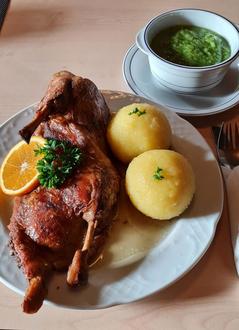 Ab 12 Uhr erwartet Sie im „Alten Forsthaus“ in Bischofsheim ein köstliches Mahl mit knuspriger Ente, hausgemachtem Wirsing und leckeren Klößen.