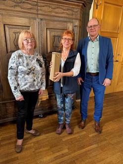 Seniorenbeiratsvorsitzende Christl Pottler und Bürgermeister Thomas Stadelmann danken Ursula Weißhaar für den informativen Vortrag.