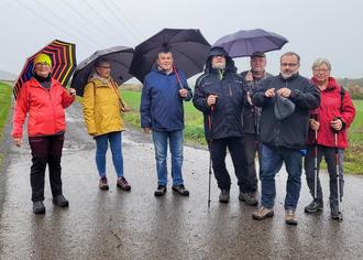 Der Wetterbericht hatte es schon seit Tagen vorhergesagt: Es würde Regen geben zur Wanderung des Bürgervereins Grabengärten. Aber trotzdem fanden sich sage und schreibe 14 Unerschrockene am Tuchanger ein, um die Strecke nach Zell ins dortige Restaurant "Zum alten Bach" anzugehen.