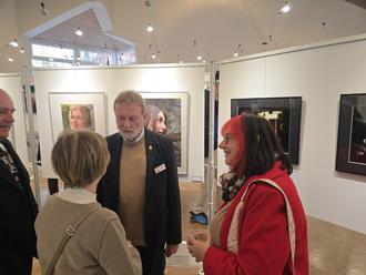 Die Bezirksvorsitzendes des Deutschen Verbands für Fotografie, Mainfranken, Ingrid Kronthaler, besuchte die Vernissage des Fotoclubs Zeil. Hier im Gespräch mit Gabi und Helmut Förster.