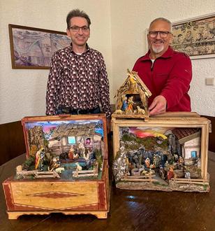 Der Zeiler Krippenbauer Klaus Kneuer zeigte Michael Schor, Vorsitzender des Förderkreises, drei seiner Krippen.