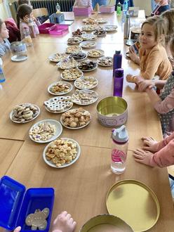 Die Kinder waren nicht zu halten, alle Sorten wurden gekostet. Zum Schluss konnte jedes Kind seine mitgebrachte Plätzchendose füllen um zuhause den Eltern und Geschwistern stolz das Ergebnis ihrer Backkünste präsentieren zu können. Nun versüßen die leckeren Plätzchen das Warten auf Weihnachten.