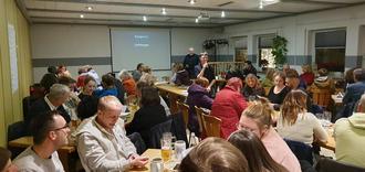 Zweiundsechzig Menschen zwischen 20 und 80 Jahren haben am vergangenen Freitag die Köpfe rauchen lassen beim Kneipenquiz der Sinnschule von Monika Schraut.