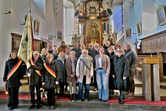 In diesem Jahr fiel der Termin mit dem 16. Jahrestag der Orgelweihe zusammen, so dass Chorleiter Ralf Hofmann zusammen mit Florian Mayer an der Eichfelder Orgel für einen zusätzlichen musikalischen Höhepunkt sorgte. In den Fürbitten erinnerte der Liederkranz an die im vergangenen Jahr verstorbenen Mitglieder Hildegard Leisentritt und Lydia Plener. Unter der Leitung von Dirigent Ralf Hofmann sang der gemischte Chor Ausschnitte aus der "Missa Princeps Pacis" von William Lloyd Webber, einem englischen Kirchenmusiker und Vater des weltbekannten Musicalkomponisten Andrew Lloyd Webber. Getreu dem Motto der Messe (Princeps Pacis bedeutet Friedensfürst) stand der Wunsch nach Frieden im Mittelpunkt des von Pfarrer Rainer Fries zelebrierten Gottesdienstes. Die ansehnliche Zahl der Kirchenbesucher belohnte die musikalischen Beiträge des Chors und der Organisten mit anerkennendem Applaus.