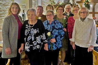 Die Feier begann mit einer besinnlichen Einstimmung, die von Birgit Herrnleben und Ulli Steigner gestaltet wurde. Anschließend standen die Ehrungen und der Dank an langjährige Vereinsangehörige im Mittelpunkt. Für 10 Jahre aktives Singen im Liederkranz wurde Heidi Hinterleitner auch mit der Ehrennadel des Fränkischen Sängerbunds ausgezeichnet; Sandra Hüller und Doris Wasser sind seit 20 Jahren dem Verein treu. Auf 30 Jahre Mitgliedschaft können Margit Wohlleber, Kerstin Haumüller, Christine Wächter und Karl-Heinz Schübert zurückblicken. 35 Jahre sind Ulrike Steigner und Franz Kolb dabei, während Eva Göller es auf über 40 Jahre und Peter Pfaff auf über 50 Jahre bringen. Margot Weinkauf ist seit nunmehr 60 Jahren im Verein, während Sigrid Carl und Lieselotte Willim sogar 65 Jahre Mitgliedschaft feiern können. Eine besondere Ehrung erhielt Renate Jaruschek, die seit 75 Jahren dem Verein auf verschiedene Weise die Treue hält.
