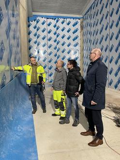 Benjamin Noll, Geschäftsführer des Wasserzweckverbandes, Uwe Morgen, Wassermeister der Stadtwerke Zeil am Main, Christian Esser, Bauleiter von Höhnen und Partner, informieren Bürgermeister Thomas Stadelmann über den Baufortschritt.