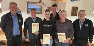 Eine besondere Freude ist es dem Verein, Ehrungen auszusprechen. Vorstand Norbert Strätz bedankt sich mit Urkunde und silberner Vereinsehrennadel für 25 Jahre Vereinsmitgliedschaft bei Richard Schlegelmilch, Svenia Mayer und Joachim Fest.