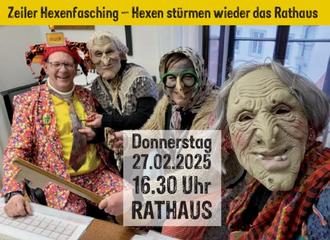 Traditionell stürmen auch in diesem Jahr die Zeiler Hexen das Rathaus. Am Donnerstag, den 27.02. um 17.00 Uhr wird