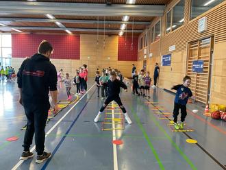 Am 04.02.2026 stand an der Grundschule Zeil-Sand alles im Zeichen des Basketballs. Die Schülerinnen und Schüler der Jahrgangsstufen 1 und 2 nahmen an einem Sportaktionstag teil, der in Kooperation mit dem Nachwuchsverein des Basketball-Bundesligisten Bamberg Baskets und mit Unterstützung der Raiffeisenbank durchgeführt wurde. In der Turnhalle Sand begrüßte Christian Krines von der Raiffeisenbank die Kinder und unterstrich die Bedeutung von Bewegung und sportlicher Aktivität für die gesunde Entwicklung junger Menschen. Anschließend führten die Trainer von Bamberg Baskets Nachwuchsverein „Freak City“ die Schülerinnen und Schüler mit viel Engagement durch ein abwechslungsreiches Programm. Nach einem gemeinsamen Aufwärmen durchliefen die Kinder mehrere Übungsstationen, an denen sie spielerisch grundlegende Basketballtechniken erlernten. Im Fokus standen dabei das Dribbeln, die Förderung von Schnelligkeit sowie die Schulung von Koordination und Geschicklichkeit. Zum Abschluss erhielt jedes Kind einen Miniaturbasketball als Erinnerung an den gelungenen Sporttag. Die Grundschule Zeil-Sand bedankt sich bei der Raiffeisenbank sowie beim Nachwuchsverein Freak City für die Unterstützung und die professionelle Durchführung der Veranstaltung. Der Aktionstag leistete einen wertvollen Beitrag zur sportlichen Förderung der Kinder und weckte nachhaltig die Freude an Bewegung.