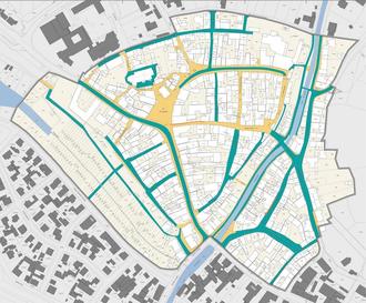 Schon in diesem Jahr soll die Umsetzung im Sanierungsgebiet starten. In der Karte sind die unterschiedlichen Beläge farblich abgesetzt.