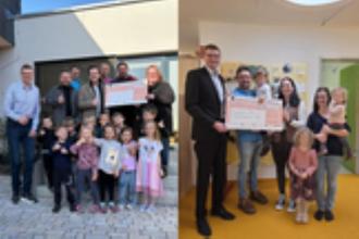 Im Regenbogenhaus nahm stellvertretend für die Kita-Leitung Frau Selina Tully die Spende entgegen. Für den Caritas-Kindergarten übernahm von der Kita-Leitung Susanne Bös-Naumann den Spendencheck.