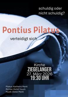 Am Freitag, 27. März, um 19:30 Uhr schildert Pontius Pilatus in der Kirche Ziegelanger seine Sichtweise auf die Verurteilung Jesu. Inszeniert wird es als Gerichtsverhandlung, musikalisch umrahmt von Dieter Markl an der Orgel. Zu dieser etwas anderen Einstimmung in die Karwoche, die auch an Pfarrer Michael Erhart erinnern soll, lädt die kath. Kirchengemeinde ein. Anschließend besteht die Möglichkeit zum Austausch bei einem Getränk.