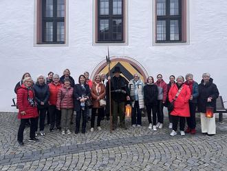 Die Damen vom Frauenstammtisch mit ihrem Nachtwächter Rainer Leisentritt