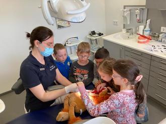 In jeder Gruppe erklärte die Zahnärztin kindgerecht, wie Karies entsteht und wie man sie behandeln kann. Dabei lernten die Kinder verschiedene zahnärztliche Instrumente kennen.