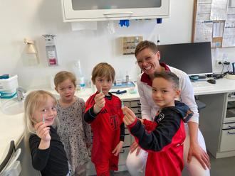 Am Donnerstag besuchten die Vorschulkinder die Zahnarztpraxis Dr. Hartwig. Gemeinsam machten sich alle auf den Weg dorthin und wurden vor Ort in kleine Gruppen aufgeteilt.