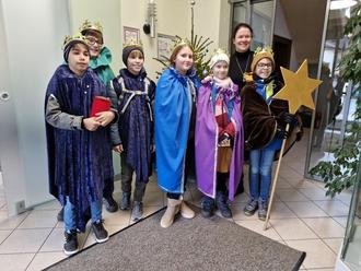Sternsinger im Rathaus mit Bürgermeisterin Deirdre Heckler.