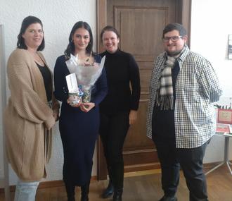 Die Zeugnisübergabefeier fand in den Räumlichkeiten des hessischen Verwaltungsschulverbandes in Darmstadt statt. Auch innerhalb der Verwaltung fanden sich zahlreiche Gratulanten. Im Rahmen einer kleinen Feierstunde überbrachten die Bürgermeisterin, der Personalrat, der Magistrat und die Kolleginnen und Kollegen der Verwaltung ihre Glückwünsche zum Bestehen der Ausbildung.