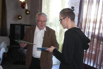 Ludwig Schmitt, Obermeister der Odenwälder Bäcker-Innung, überreicht Emilio Keil (re) den Gesellenbrief und ein Präsent.