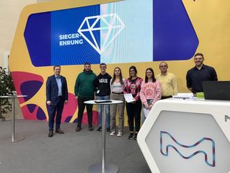 Nachdem die Lösungen zu den teilweise sehr kniffligen Aufgaben vorgestellt wurden, fand die Siegerehrung als letzter Programmpunkt statt. Von den 60 Teilnehmerinnen und Teilnehmern und 13 Gruppen wurden jeweils die besten 10 platziert, wobei die drei besten Schülerinnen und Schüler ein Stipendium für die Modellierungswoche im Herbst 2023, die vom Zentrum für Mathematik ausgetragen wird, erhielten, bei der es darum geht, sich mit mathematischen Problemen auseinanderzusetzen. Des Weiteren erhielten alle Teilnehmerinnen und Teilnehmer eine Urkunde und teilweise auch Sachpreise. Die Gruppe aus Höchst hatte allen Grund zur Freude, denn sie gewannen den zweiten Platz in der Gruppenwertung. Alicia Krauß belegte den siebten Platz und Chiara Görner den dritten Platz in der Einzelwertung.