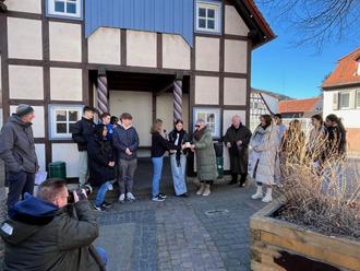 Am 18. März fand die Gedenkveranstaltung, initiiert von der Bürgerstiftung Breuberg, zum Andenken an die im Jahr 1942 stattgefundene Deportation der beiden letzten jüdischen Familien aus Neustadt, Kempe und Marx, statt. Wie auch in den vergangenen Jahren waren Schülerinnen und Schüler sowie Lehrkräfte der Georg-Ackermann-Schule anwesend und wirkten aktiv mit.