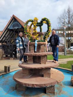 Pünktlich zum Brunch wurde auch der Dorfbrunnen festlich geschmückt und setzte so einen weiteren farbenfrohen Akzent im Ortsbild. In den vergangenen Tagen hatten Julia und Samantha mit viel Liebe zum Detail die Osterkrone für den Dorfbrunnen gestaltet.