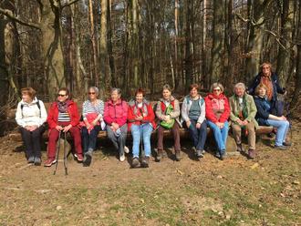 Für den heutigen Sonntag zeigt die Tageszeitung rote Wanderstiefel als Symbol für schlechtes Ausflugswetter. Also packen wir Schirm und Regenjacke in den Rucksack – aber auch die Sonnenbrille, die wiegt ja nicht viel. Der Ramsauer-Bus bringt uns zum Parkplatz „Hesselburg“ auf der Pflaumheimer Höhe. Wir wandern Richtung Niedernberger Waldgebiete. Der Wald ist noch kahl, aber ab und zu ein zarter grüner Schimmer, hier ein einziger Huflattich, dort einige vorwitzige Veilchen, winzige Buschwindröschen lassen uns den Frühling sehen. Und wir können den Frühling hören: Die Vögel jubilieren eine Wald-Sinfonie.