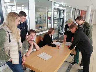 Zu diesem Zeitpunkt waren auch die Vorbereitungen für unseren jährlichen Fairtrade-Osterhasenverkauf abgeschlossen, sodass in der Woche vom 20.03.2023 - 24.03.2023 viele Schülerinnen und Schüler der GAS zahlreiche Schoko-Langohren in der Aula erwerben konnten.