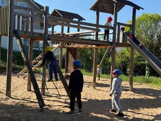 Die einen nahmen gemütlich den Anfängerweg auf den nahegelegenen Spielplatz. Dort wurde fleißig geschaukelt, gerutscht und natürlich auch gepicknickt.