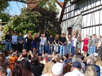 „Wir sind alle Kinder Gottes“ so stand auf dem Altartuch, welches die Konfirmanden gestaltet hatten. Es war Teil ihrer Botschaft gegen Rassismus, welches sie sich als Thema für ihren Vorstellungsgottesdienst ausgesucht hatten. 170 Menschen feierten am Sonntag beim Gottesdienst auf der Naturbühne am Dorftreff in Rai-Breitenbach mit. Fröhliche Musik lud zum Mitsingen ein. Inhaltlich appellierten die Konfirmanden für Nächstenliebe und Respekt und Toleranz für alle Menschen unabhängig ihrer Herkunft. Die Texte dazu haben sie selbst geschrieben und den kompletten Gottesdienst unter Anleitung von Pfarrerin Christina Meyer und den beiden Gemeindepädagoginnen Eva Heldmann und Mirjam Lebrecht vorbereitet. Sie verteilten Brillenputztücher an die Gottesdienstbesucher zum klaren Blick auf andere Menschen und luden dazu ein, Steine im Gedenken an die Opfer von Rassismus abzulegen und auch eine Schweigeminute war Teil des fröhlichen und zugleich nachdenklichen Gottesdienstes.